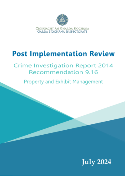 A Post Implementation Review (PIR) is conducted to verify if a recommendation made in an Inspectorate report has been fully implemented, and if so, whether it is achieving the intended outcome(s). Following an internal assessment process, Recommendation 9.16 was selected for a PIR. It focused on four of the six actions which included the implementation of an integrated IT property management system and rollout across all divisions, the development of a national drug register and the nomination of members with responsibility for managing forensic samples.